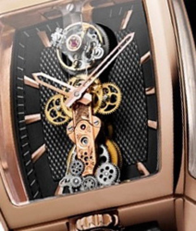 Продолжаем знакомиться с изделиями от всемирно известного швейцарского производителя часов Corum, основанного в 1955 году. Серия Golden Bridge (Золотой мост), впервые была представлена в 1980 году и сразу же произвела фурор в часовой индустрии. Это были первые модели часов с вертикальным механизмом в форме моста. Серия позиционируется не только как часовой механизм, но и как дизайнерский объект. Корпус часов, размером 34х51 мм, изготовлен из розового золота. В верхней части моста, расположен турбийон (механизм, компенсирующий влияние гравитации земли на точность хода часов). Верхний мост турбийона воспроизведен в форме ключа – эмблемы бренда. Благодаря тому что сапфировое стекло закрывает помимо передней и задней поверхности также и боковые стороны корпуса, можно рассмотреть все нюансы работы механизма. Циферблат черный, гильошированый. Часовая и минутная скелетонизированные стрелки изготовлены из розового золота. Калибр часов СО 213, механический, с ручным заводом, запас хода составляет 40 часов. Заводной ключ, на торце которого выгравирована эмблема бренда Corum, находится на позиции 6 часов. Ремешок изготовлен из кожи аллигатора с застёжкой из розового золота. Что касается водонепроницаемости, то она составляет тридцать метров