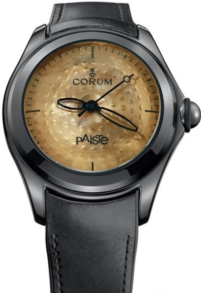 Данная версия швейцарских часов разработана компанией Corum совместно с известным производителем музыкальных тарелок Paiste. Поэтому циферблат данной модели полностью повторяет текстуру барабанной тарелки. На циферблате указываются данные часов, минут и секунд. Круглый корпус изготовлен из нержавеющей стали, которая покрыта специальным черным покрытием PVD. Параметры корпуса: 42 х 18.8 мм. Механизм с автоподзаводом С0110 мануфактурного производства швейцарского бренда Corum обладает запасом хода в 42 часа. Ремешок черного цвета выполнен из натуральной телячьей кожи. Водонепроницаемость корпуса часов - 100 метров. Ограниченная серия - 350 экземпляров.