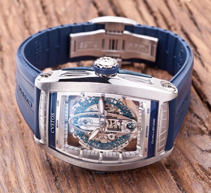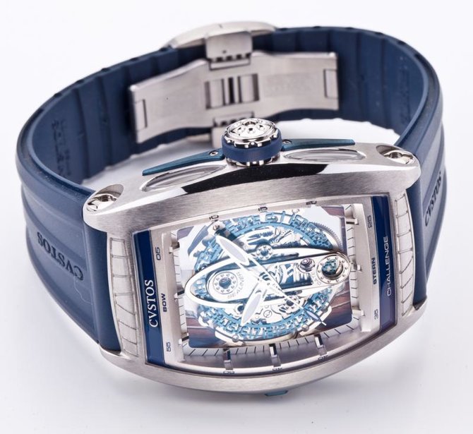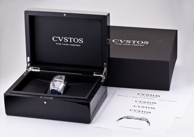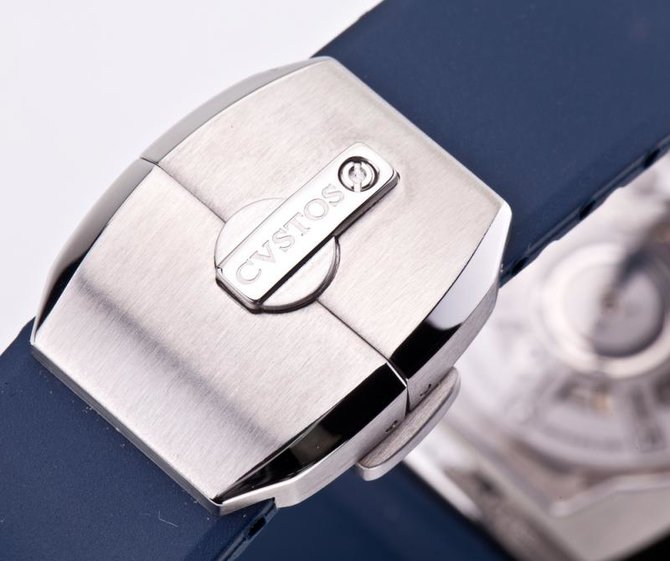 Наручные часы от производителя Cvstos, модель Sea-Liner. Скелетон Challenge Sea-Liner обладает стандартными функциями: часы, минуты, секунды и дата. Имея морскую цветовую гамму, они подчеркивают свой роскошный морской стиль, название и идею CVSTOS, которые с 2005 года следуют своему эстетическому видению часового искусства. Механизм с автоподзаводом, частота колебаний 28,800 пк/ч, запас хода 42 ч. Корпус изготовлен из нержавеющей стали, диаметром 41 х 53,7 и толщиной 13,35 мм. Сапфировое стекло с двойным антибликовым покрытием, для более четкой видимости даже в очень солнечную погоду. Водонепроницаемость 100 м. Ремешок каучуковый, синего цвета с раскладной застежкой.