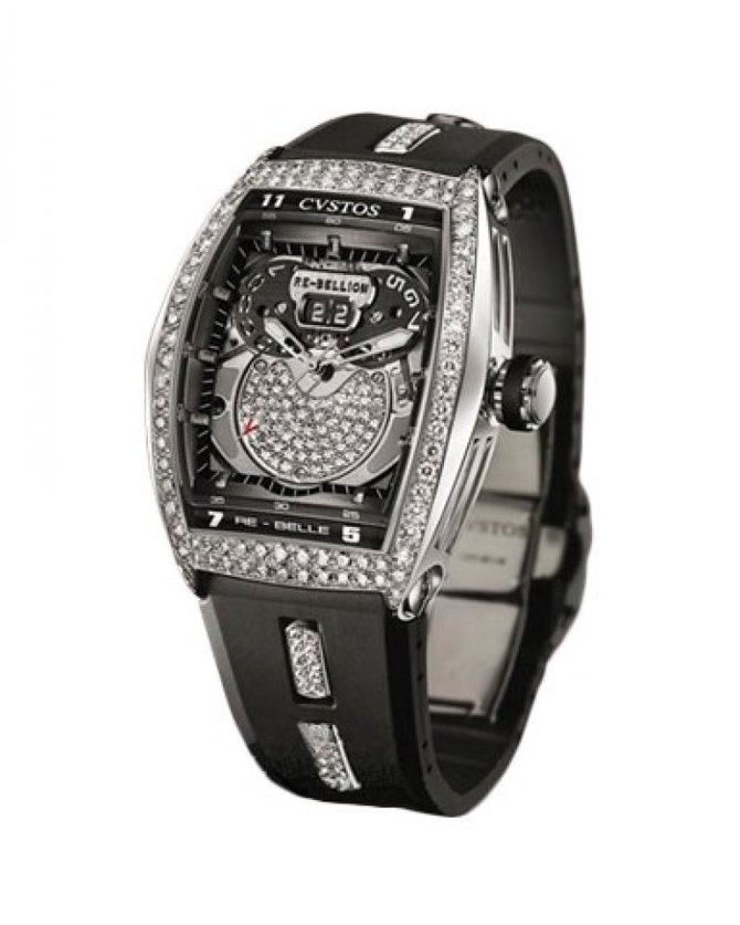 Швейцарская часовая марка Cvstos пока не так широко известна в нашей стране, однако она, вне всякого сомнения, заслуживает внимания. Несмотря на то, что у Cvstos нет за плечами вековой впечатляющей истории, как у маститых швейцарских брендов, и ее основателю немногим больше двадцати лет, за ней стоит фигура такой легендарной мануфактуры как Franck Muller, так как ее глава является родным отцом Сассуна Сирмакеса, вдохновителя и создателя молодой марки. Восхитительные женские наручные часы Cvstos Re-Belle Re-Bellion DD RB WGR New представлены в корпусе из белого золота. Корпус и циферблат инкрустированы бриллиантами. Калибр CVSTOS 550 обеспечивает запас хода 42 часа. На позиции 12 часов расположена увеличенная дата. Модель поставляется на ремешке из кожи аллигатора с вставкой из белого золота 18к, инкрустированной бриллиантами. Также часы могут похвастаться водонепроницаемостью, она составляет 100 метров.