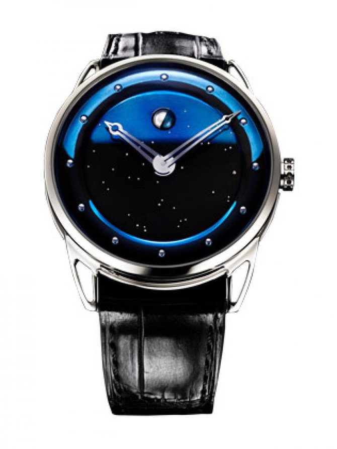 Любители классики, а также изделий проверенных временем буду в восторге от новой шикарной модели мужских наручных часов DB25LWS3V2 из коллекции The Classics, от всемирно известного швейцарского производителя De Bethune, чье имя вот уже как 11 лет радует замечательными часами. На первый взгляд модель довольно таки простая, но на самом деле это стандартная классическая модель мужских часов, из функций у которой часы, минуты, запас хода. Также часы показывают фазы луны, что дает право назвать данную модель астрономическими часами. Что касается запаса хода, то на этот нюанс стоит обратить внимание, так как запас хода достаточно увеличен. В течении шести дней можно не волноваться о подзаводе, а заниматься своими делами. Корпус часов круглой формы, выполнен из 18-каратного белого золота, с параметрами 44 мм в диаметре. Автоматический механизм оснащен калибром DB 2105si, который работает на 34 драгоценных камнях. На серебристо гильошированном циферблате, (гильоширование которого выполнялось вручную при помощи гильоширной машинки) "ходят" вручную отлитые стальные стрелки. Ремешок черного цвета выполнен из кожи аллигатора, оснащен откидной застежкой, а также золотой вставкой, которая сделана из 18-каратного белого золота. Водонепроницаемость модели стандартная для такого класса часов, и составляет 30 метров.