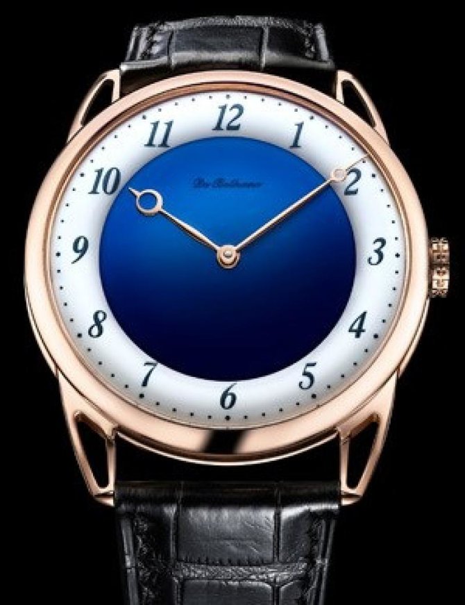 Новая модель 2015 года от De Bethune - классические механические часы Midnight Blue & White Night в корпусе их 18-каратного розового золота, диаметром 44 миллиметра. На эмалированном циферблате указываются часы и минуты с помощью стрелок, выполненных в стиле Breguet. На запястье часы крепятся ремешком из кожи аллигатора с золотой пряжкой. Герметичность золотого корпуса - 30 метров. Внутри корпуса расположен автоматический швейцарский механизм, Калибр DB2024, состоящий из 287 деталей. Запас хода механизма - 6 дней (144 часа). Механизм, выполненный из титана и твердой платины, запатентован компанией De Bethune. Циферблат покрыт сапфировым стеклом. Стрелки часов произведены из золота.