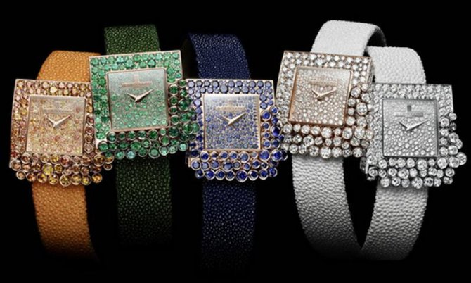 Модели ювелирных женских наручных часов коллекции SUGAR, швейцарского бренда-законодателя моды de Grisogono - это настоящая драгоценность. Роскошный золотой корпус обрамляют множество драгоценных камней. Циферблаты коллекции декорируются перламутром и бриллиантами. На защищенном сапфировым стеклом с антибликовыми свойствами циферблате отображается главнейшая функция наручных часов - индикация текущего времени. В комплект входит ремешок, изготовленный из натуральной кожи ската, с раскладывающейся золотой застежкой, инкрустированной драгоценными камнями. У бренда появился собственный, узнаваемый сегодня, стиль. Главная особенность компании de GRISOGONO – это игра с цветом. Особенно запоминаются украшения с черными бриллиантами, на которые некогда сделал ставку Фаваз - основатель фирмы. Большое количество драгоценных камней - это легкое движение, мерцающее с каждым поворотом запястья. Внутри корпуса находится кварцевый часовой механизм. Водостойкость корпуса - до 30 метров (3 атм.)