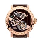 Первым изделием Жерома стал великолепный двусторонний репетир с дифференциальным турбийоном. Эти часы имеют турбийон на лицевой стороне, а на задней видны молоточки и гонги системы боя, а также дополнительные стрелки второго (домашнего) часового пояса. При этой конструкции узнавать домашнее время всегда можно легко и незаметно. Команда компании DeWitt неутомимо экспериментирует с новыми материалами и изобретает очень необычные и интересные комбинации.
