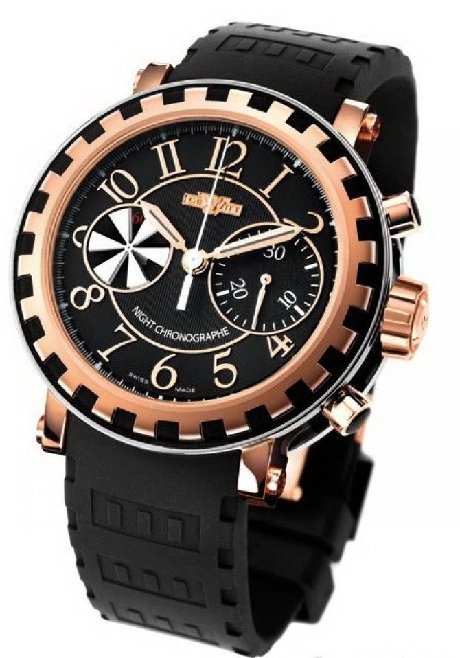 DeWitt, бренд часов с запоминающимся и узнаваемым дизайном. Годом создания является 2003, а специалистами компании лучшие мастера швейцарских брендов, которых владелец, Жером де Витт, успешно переманил в свою корпорацию. Стремительный успех молодого бренда, объясняется смелостью при выборе материалов, экспериментами в технологиях, и запатентованными фирменными элементами. Одним из таких, является безель, имитирующий императорские колоны, узор напоминающий шестеренки, благодаря талантливым PRщикам, ассоциируется теперь исключительно с брендом деВитт. Владелец компании, человек с великолепной родословной, унаследовал от своих всемирно знаменитых предков, вековую коллекцию часов, именно поэтому, идеи, возникающие в сознании Жерома деВитта, столь неординарны, ведь он может лицезреть тысячи лучших часов созданных в разные периоды их существования, и из них получать «экстракт» в виде симбиоза лучших качеств и достоинств.