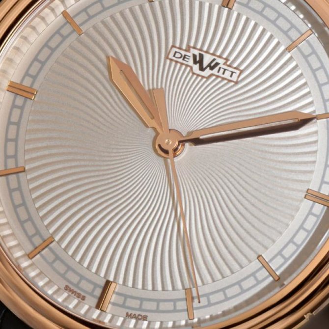 В то время, как введение решительного классического стиля и чрезвычайно чистых линий, это модель остается верной DeWitt DNA. Корпус тоньше, чем в Academia и Twenty-8-Eight коллекций, характеризуется изысканным орнаментом культовых для марки имперских колонн. Модель представлена в корпусе из розового золота 18 карат. Белый циферблат с лучистой отделкой оснащен по центру - накладными часовыми метками и скелетонизированными мечевидными стрелками, выполненными из 18-каратного розового золота. Калибр механический с автоматическим подзаводом и запасом хода до 42 часов, частота колебаний баланса 28,800 пк/час. Водонепроницаемость до 30 м. Ремешок из кожи аллигатора с вставкой из розового золота 18к.