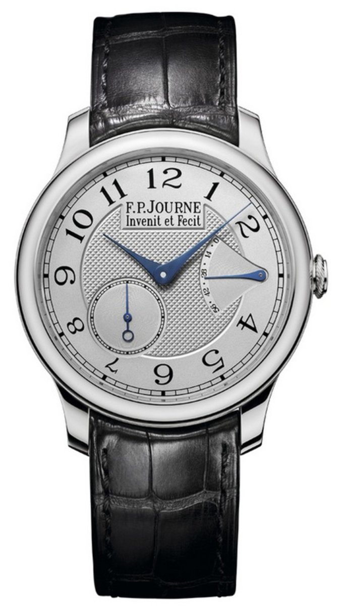 Данная модель Chronometre Souverain является великолепным свидетельством изобретательности и мастерства Франсуа-Поля Журна. Верный своему стилю, мастер вновь демонстрирует свой удивительный талант, создавая часы, поражающие чистотой и совершенством линий. Доступны в исполнении корпуса из платины или 18-каратного розового золота, серебристый циферблат, браслет из платины или 18-каратного розового золота, или ремешок из кожи аллигатора. Новый циферблат с золотым тиснением комплексных чисел. Chronometre Souverain выполнен из платины. Часы и минуты расположены по центру, малая секундная стрелка в положении 7 часов 30 минут, указатель запаса хода в положении 3 часа. Калибр FPJ 1304 с ручным заводом выполнен из розового золота, частотой колебаний баланса 21,600 пк/час, двойные барабаны работают параллельно, обеспечивая стабильный приток энергии для большей части указанного 56-часового запаса хода. Водонепроницаемость до 30 м. Ремешок из кожи аллигатора с платиновой вставкой.