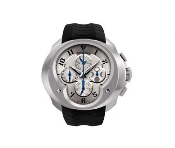 Механические астрономические часы с функцией хронографа и индикатором лунных фаз Chronograph Master Haute Horlogerie FVa9. Кроме основных часовых усложнений, циферблат, выполненный в форме перевернутой цифры "8", также указывает данные часов, минут, секунд, текущей даты, дней недели и месяца. Сердце швейцарских часов - мануфактурный швейцарский механизм с автоматическим подзаводом, Калибр FV 9, находится в корпусе из 18-каратного золота. Водостойкие часы, герметичность которых составляет 100 метров, выпускаются ограниченным тиражом - 88 экземпляров. В комплекте к модели идет ремешок из кожи аллигатора или натурального каучука с раскладывающейся пряжкой, изготовленной из того же материала, что и корпус. Известный швейцарский часовой бренд Franc Vila носит имя своего основателя - испанца Френка Виллы. Часовщик утверждает, что занялся производством часовых шедевров после того, как не смог выбрать себе достойную модель на современном рынке элитных часов.