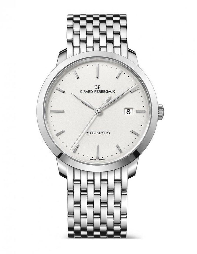 Новинка от Girard-Perregaux, вышедшая в 2015 году, представлена в 40-миллиметровом стальном корпусе с двумя видами фиксаторов на запястье: ремешок из натуральной кожи аллигатора (реф. 49555-11-131-BB60) и браслет из нержавеющей стали (реф. 49555-11-131-11A). Модель выполнена в элегантном дизайне "understatement". Толщина корпуса всего 8.9 миллиметров. Герметичность корпуса - 30 метров. На заводном ключе выгравирована эмблема бренда Girard-Perregaux. Корпус с двух сторон защищает сапфировое стекло с антибликовым покрытием. Модель функционирует на швейцарском мануфактурном механизме Girard-Perregaux GP03300-0030 с автоподзаводом. Количество драгоценных камней механизма: 27. Балансовая частота: 28 800 полуколебаний. Запас хода: 46 часов. На циферблате указываются: часы, минуты, секунды, дата.