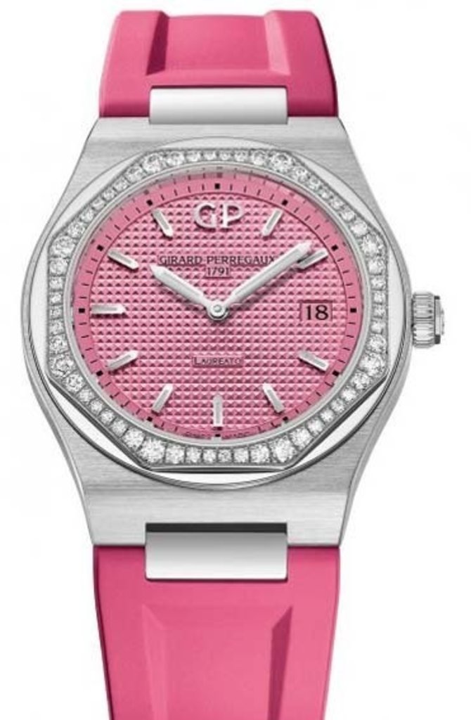 Данные швейцарские часы от Girard-Perregaux вошли в коллекцию Laureato в корпусе из нержавеющей стали, который был инкрустирован белыми бриллиантами. Яркий гильошированный розовый циферблат наручных часов Laureato 34 mm 80189D11A1822FK9A служит для отображения данных текущего времени стальными люминесцентными стрелками, а также даты посредством специального индикатора около отметки 3 часа. Циферблат накрыт с целью защиты от повреждений прозрачным сапфировым стеклом. Браслет из каучука розового цвета и раскладная застежка из стали - в комплекте. Механизм кварцевого типа GP013100-0005 разработан специалистами марки Girard-Perregaux. Он функционирует от батарейки. Герметичность корпуса на базовом уровне - 3 атм. Лимитированный тираж - 75 экземпляров.