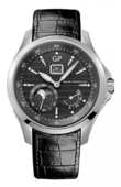 Представленная модель швейцарских наручных часов для мужчин имеет автоматический механизм GP03300-0080 на 35 драгоценных камнях, минимальный запас хода - 46 часов. Механизм расположен в корпусе из нержавеющей стали. Диаметр корпуса - 44 мм, толщина - 12.10. Ремешок, изготовленный из телячьей кожи, имеет классическую пряжку для фиксации часов на запястье своего владельца. Максимальная водонепроницаемость корпуса - 100 метров. Стальные корпусы наручных часов обладают важным преимуществом – оптимальное соотношение «цена-качество». Также они достаточно прочны и обладают гипоаллергенными свойствами. Внешний вид стальных часов всегда представителен и респектабелен. К минусам можно отнести только их вес, так как нержавеющая сталь – тяжелый металл. Со временем, на стальном корпусе могут появится мелкие царапины, которые при помощи полировки легко устраняются. Индикатор запаса хода - это специальный механизм, с помощью которого можно вычислить количество часов, а может быть и суток, до полной остановки завода пружины. Запас хода объединяет стрелку с барабаном завода с помощью шестеренок. Используя модели наручных часов с функцией запаса хода, Вас никогда не застанет врасплох внезапная остановка часового механизма в неудачное время. Авторитетный швейцарский часовой бренд Girard-Perregaux был основан Жаном-Франсуа Ботом в 1791 года. Свои первые часы Жан-Франсуа собрал в 19 лет. Его талант часовщика считался неоспоримым. Мировую славу основателю Girard-Perregaux принесли его ультратонкие часы. Считалось, что швейцарские часы Girard-Perregaux создавались для великих людей. В послужном списке клиентов, заходящих в часовую мануфактуру Girard-Perregaux, значилось имя королевы Англии – Виктории.