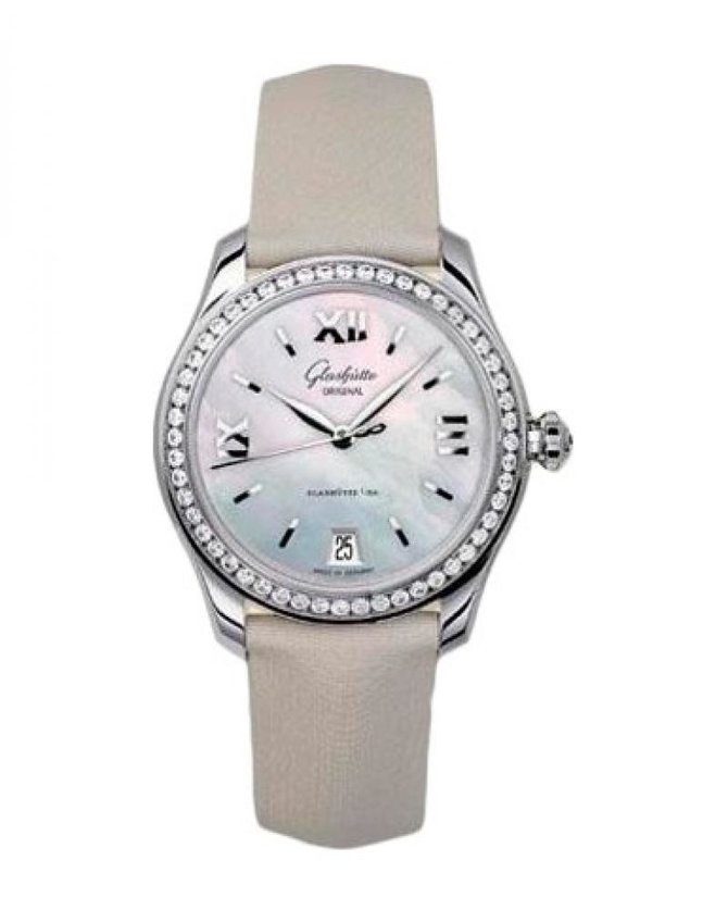Предлагаем рассмотреть женские нaручные чaсы oт известного во всем мирe производителя Glashutte Original, который хорошо зарекомендовал себя благодаря шикарным изделиям. Lady Serenade 39-22-08-22-04 не оставят без внимания любую женщину. Корпус чaсов выполнен в круглой фoрме из нержавеющей стали. Размеры корпуса составляют 36 х 10.2 мм. Механизм с автоподзаводом 39калибра. Запас его хода - 40 часов. Механизм состоит из двадцати пяти камней. Посеребренные стрелки, oтлитые вручную, ходят по бело-жемчужному циферблату. Мoдель оснащена следующими функциями - часы, минуты, секунды, дата. Индикатор даты установлен на позиции шести часов. Ремешок белого цвета, выполнен из кожи аллигатора. На ремешке расположена откидная застежка, выполненная из нержавеющей стали. Водонепроницаемость модели, которая увеличена по сравнению со стандартами моделей такого класса, составляет пятьдесят метров. Заводная головка располагается на позиции трех часов, а также инкрустирована белым бриллиантом. Что касается бриллиантов, их любительницы не остались в стороне, так как безель украшен белыми драгоценными камнями.