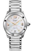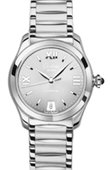 Мануфактурный калибр 39-22, который обеспечивает индикацию текущего времени и даты, установлен внутри стального корпуса с инкрустацией белыми бриллиантами. Параметры корпуса: 36 х 10.2 мм. Циферблат черного цвета находится под защитой сапфирового стекла с антибликовым покрытием. Стрелки и часовые метки сделаны из нержавеющей стали. Заводная головка часов также украшен драгоценным камнем. Ремешок из кожи аллигатора черного цвета - в комплекте. Застежка раскладывающаяся. Механизм имеет 40-часовой запас хода. Корпус способен выдержать давление воды на уровне до 5 атм (50 метров). Ремешок прошит вручную мастерами компании. Всего на корпусе расположено 52 бриллианта, весом 1.09 карат.