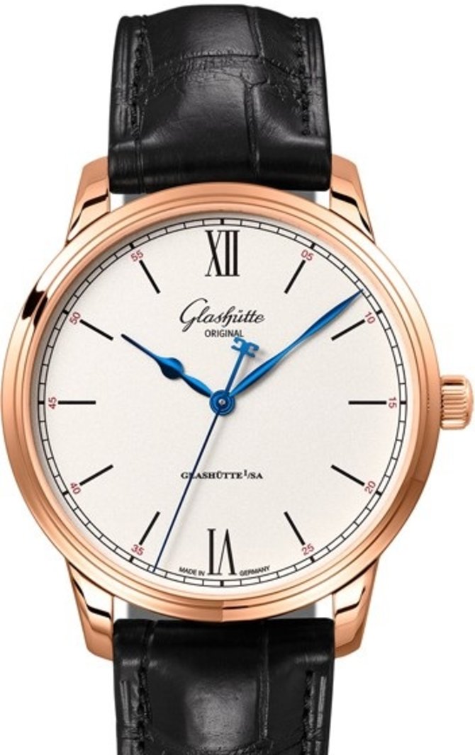 Мужские швейцарские часы Glashutte Original 20th Century Vintage Senator Excellence 1-36-01-02-05-30 выпущены в корпусе, диаметром 40 мм, круглой формы из розового 18-каратного розового золота. Белый циферблат с синими воронеными стрелками закрыт недежным и прочным сапфировым стеклом с покрытием для избежания бликов солнца. Механизм, гарантирующий индикацию часов, минут и секунд, имеет функцию автоматического подзавода. Ремень из кожи крокодила пошит руками мастеров Glashutte в черном цвете. Застежка классическая, из золота. Герметичность корпуса - 50 метров. Механизм отличается запасом хода, рассчитанным на 100 часов работы.