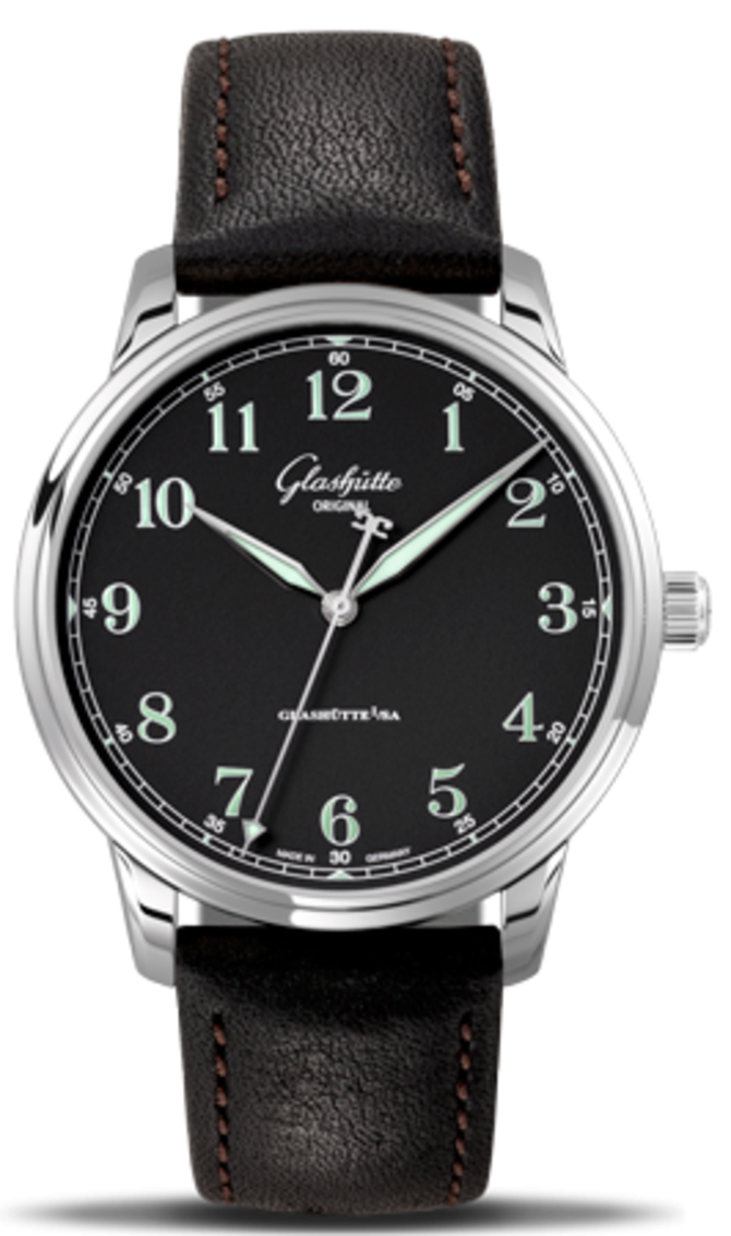 Швейцарские элегантные наручные часы Glashutte Original 20th Century Vintage Senator Excellence 36-59-03-02-01 отличаются удачным сочетанием круглого классического корпуса из нержавеющей стали и мягкого ремешка из натуральной телячьей кожи, который прошит вручную мастером компании. Внутри представленных часов инженерами мануфактуры установлен автоматический калибр 36, с помощью которого на циферблате отображаются часы, минуты и секунды. Механизм имеет 100-часовой запас хода. Диаметр стального корпуса - 40 мм, а толщина - всего 10 мм. К ремешку идет классическая стальная пряжка. Водостойкость корпуса часов - 50 метров. Циферблат черного цвета с крупными цифрами от 1 до 12 накрыт сапфировым стеклом.