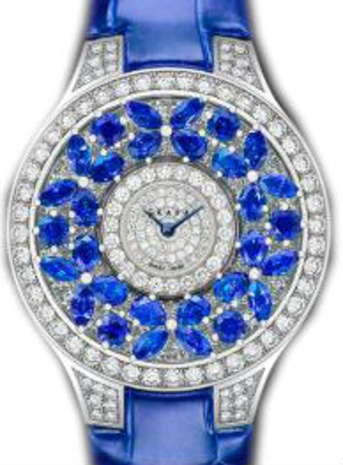 Часовая марка GRAFF представляет ювелирные часы для женской половины населения планеты - Butterfly Classic Ref. BF32WGSD, что представлены в корпусе круглой формы из белого золота с инкрустацией множеством белых бриллиантов, а также синими сапфирами. Внутри искусного корпуса размещен кварцевый механизм от инженеров марки GRAFF. На бриллиантовом циферблате указываются данные часов и минут с помощью вороненых стрелок синего цвета. Стекло, которым накрыт циферблат, выполнено из сапфирового кристалла. Модель укомплектована ремешком из кожи аллигатора синего цвета и классической пряжкой из белого золота. Размер корпуса: 32 мм в диаметре и 9 мм в толщину.