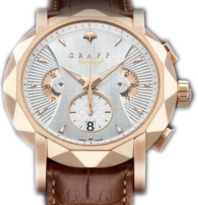 Знаменитый бренд GRAFF, славящийся своими ювелирными и часовыми произведениями, представляет свою разработку - наручные часы ChronoGraff 45 mm Ref. CG45PGW3. Часы отличаются ювелирным корпусом из розового золота, механическим калибром с хронографом, а также запасом хода на 42 часа работы. Производитель предлагает фиксировать часы на запястье руки ремешком из натуральной кожи аллигатора коричневого цвета с классической вставкой из розового золота. Сапфировый кристалл защищает циферблат от повреждений. Корпус имеет 30-метровую водонепроницаемость.
