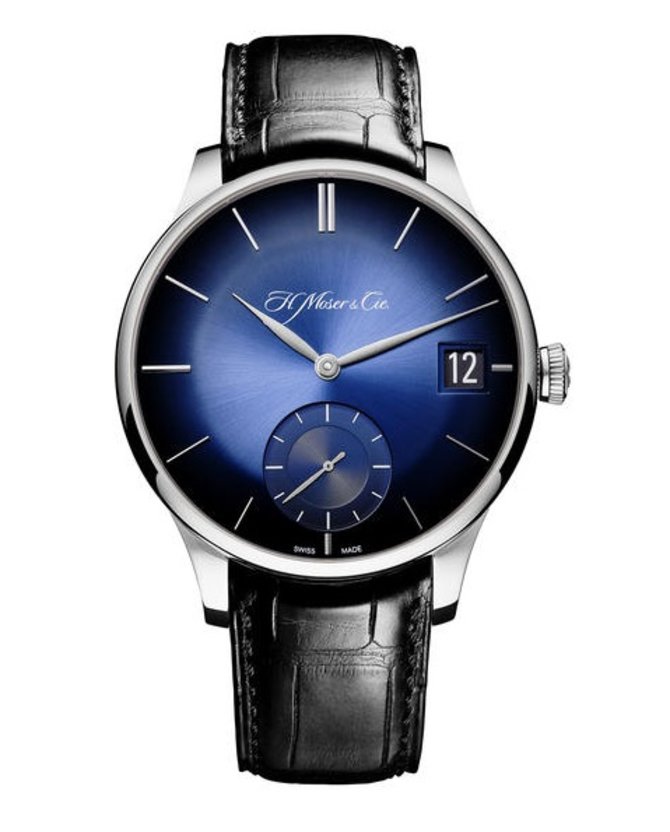 Корпус представляемой модели швейцарских часов из 18-каратного белого золота внутри себя содержит мануфактурный механический механизм с ручным подзаводом, который обеспечивает владельца H. Moser & Cie Venturer таким функциональным набором: часы, минуты, секунды, дата, запас хода. Данный механизм - это собственная разработка швейцарской компании H. Moser & Cie. Диаметр золотого корпуса - 41.5 мм, а толщина - 14.15 мм. За сохранность циферблата отвечает выпуклое сапфировое стекло. Задняя крышка тоже выполнена из сапфирового стекла. Часы поставляются на ремешке из натуральной кожи крокодила с классической пряжкой из белого золота. Заводная головка с фирменным логотипом. Запас хода механизма - от 7 до 10 дней. Ремешок прошит вручную. На застежке выгравированный логотип Moser.