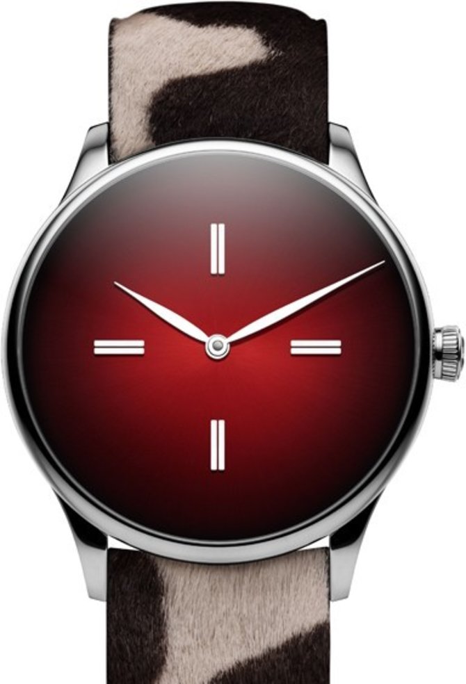 H. Moser & Cie Venturer Small Seconds 2327-0208 - швейцарские классические наручные часы на базе механического калибра HMC 327 с ручным подзаводом и запасом хода на 3 дня работы, что были выпущены компанией H. Moser & Cie в круглом корпусе из белого золота с 30-метровой водонепроницаемостью. На сатинированном циферблате бордового цвета, защищенном сапфировым стеклом, указываются данные текущего времени стрелками из белого золота. Модель укомплектована ремешком из натуральной кожи и классической застежкой из белого золота. Швейцарская марка H. Moser & Cie выпустила модель Venturer Small Seconds 2327-0208 в 2019 году ограниченной серией 50 экземпляров. Сквозь прозрачную заднюю крышку из сапфирового стекла виден индикатор запаса хода механизма.