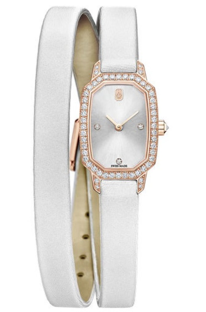 Утонченные наручные часы для женщин созданы американской часовой мануфактурой Harry Winston, собирающей свои часовые шедевры в Швейцарии. Бренд входит в состав крупнейшей часовой компании Swatch Group. Корпус модели изготовлен из розового золота высочайшего качества. Кроме того, он искусно украшен множеством белых классических бриллиантов. Часы укомплектованы длинным ремешком белого цвета, который снабжен классической пряжкой из 18-каратного розового золота. Кроме безеля корпуса, бриллиантом украшена и заводная головка часов. Циферблат серебристого цвета, где расположены три бриллианта и золотой логотип компании Harry Winston, защищается прочным сапфировым стеклом с антибликовым покрытием. Параметры корпуса достаточно практичны: 17.75 x 24.00 х 6.10 мм. Индикацию часов и минут обеспечивает мануфактурный кварцевый механизм. Водонепроницаемость корпуса – 30 метров.