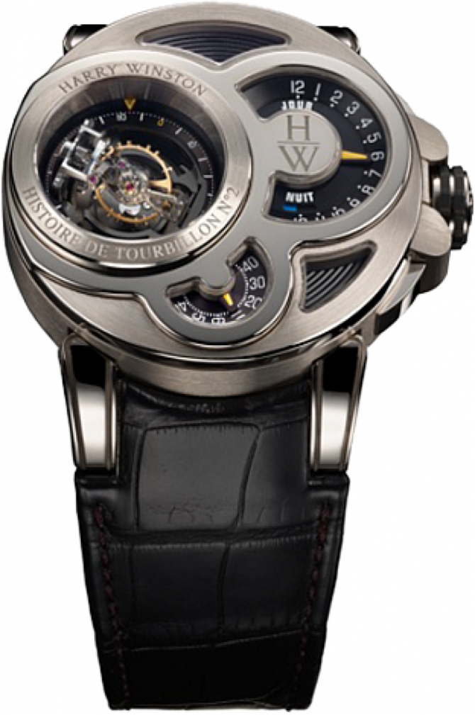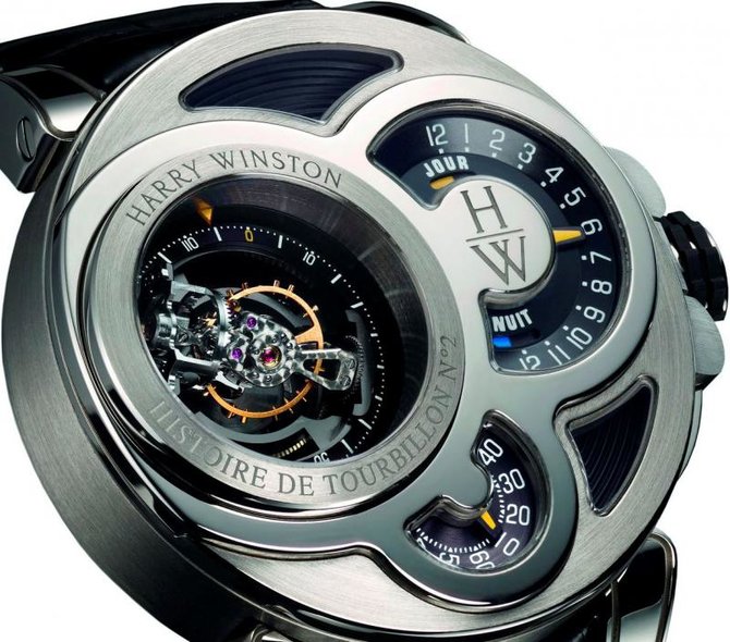 Известная на весь мир американская компания Harry Winston, которая специализируется на изготовлении великолепных часов, а также ювелирных изделий, и берет свое начало в далеком 1932 году, представляет Вашему вниманию очередную модель мужских наручных часов Haute Horology Histoire de Tourbillon 500/MMT48WL.K из коллекции Haute Horology. Данная модель будет интересна любителям строгих неординарных дизайнов, подчеркивающие оригинальный стиль, а также функциональных устройств. Корпус круглой формы отполирован до блеска, выполнен из белого восемнадцати каратного золота, его размер составляет 48.5мм в диаметре. Основные функции часов это часы, минуты, секунды, индикатор дня и ночи, но главную функциональную часть, выполняет здесь турбийон. Механизм часов автоматический, имеет запас хода на 50 часов. Циферблат часов серебристо-черного цвета. Браслет часов черного цвета, выполнен из кожи аллигатора, оснащен откидной золотой застежкой. Стрелки которые находятся на циферблате, отлиты вручную из вороненной стали. Прочное сапфировое стекло закрывает корпус, а задняя крышка находится под давлением. Водонепроницаемость модели составляет 30 метров. Заводной ключ находится на позиции трех часов. Серия данной модели ограничена всего в 20 экземпляров.