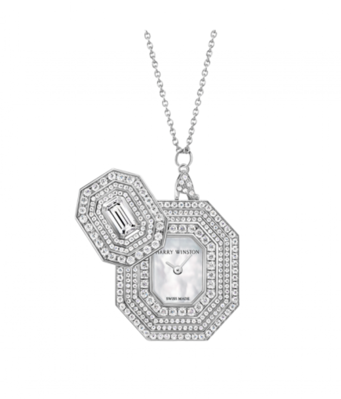 Объединив высокое часовое искусство с лучшими ювелирными традициями, Harry Winston создает действительно шикарную, элегантную и женственную модель. Корпус часов произведен из белого золота. Внутри корпуса - кварцевый механизм, калибр HW1051, отвечающий за индикацию часов и минут. Герметичность корпуса - 30 метров. На представленных женских наручных часах размещено 442 драгоценных камней, вместе которые имеют вес около 2.5 карат. Новая модель завораживает не только роскошной отделкой, но и искусной работой. Новинка пополнила коллекцию High Jewelry известной американской часовой и ювелирной компании Harry Winston. Для ее создания часовщики и ювелиры бренда потратили более 440 часов труда!