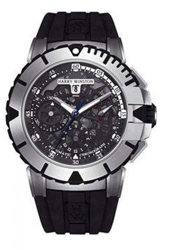 Известная на весь мир американская компания Harry Winston, которая специализируется на изготовлении великолепных часов, а также ювелирных изделий, и берет свое начало в далеком 1932 году, представляет Вашему вниманию очередную модель мужских наручных часов Ocean Ocean Sport Chronograph OCSACH44ZZ001 из коллекции Ocean. Данная модель будет интересна любителям строгих модернистических дизайнов, подчеркивающие оригинальный стиль, а также функциональных высококачественных устройств. Корпус круглой формы отполирован до блеска, выполнен из залиума, его размер составляет 44 х 11.7 мм. Основные функции часов это часы, минуты, дата, индикатор день/ночь. Механизм часов автоматический, имеет запас хода на 42 часа, оснащен калибром HW1001. Циферблат часов черного цвета. Ремешок часов выполнен из каучука, оснащен откидной застежкой сделанной из залиума. Стрелки которые находятся на циферблате, отлиты вручную из вороненной стали. Прочное сапфировое стекло закрывает корпус, а задняя крышка находится под давлением. Водонепроницаемость модели составляет 50 метров.