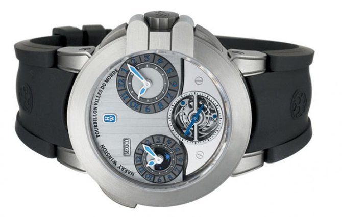 Известная на весь мир американская компания Harry Winston, которая специализируется на изготовлении великолепных часов, а также ювелирных изделий, и берет свое начало в далеком 1932 году, представляет Вашему вниманию очередную модель мужских наручных часов Ocean Ocean Project Z5 OCEATG45ZZ002 из коллекции Ocean. Данная модель будет интересна любителям строгих модернистических дизайнов, подчеркивающие оригинальный стиль, а также функциональных высококачественных устройств. Корпус круглой формы отполирован до блеска, выполнен из залиума, его размер составляет 45 мм в диаметре. Основные функции часов это часы, минуты, секунды. Механизм часов имеет запас хода на 42 часа, оснащен калибром FL 301. Шильошированный циферблат часов серо-серебристого цвета. Ремешок часов выполнен из каучука, оснащен вставкой из залиума. Стрелки которые находятся на циферблате, отлиты вручную из вороненной стали. Прочное сапфировое стекло закрывает корпус, а задняя крышка находится под давлением. Водонепроницаемость модели составляет 100 метров. Стоит также отметить наличие турбийона в данной модели, а также функцию двойного времени. Серия данной модели ограничена в 100 экземпляров.