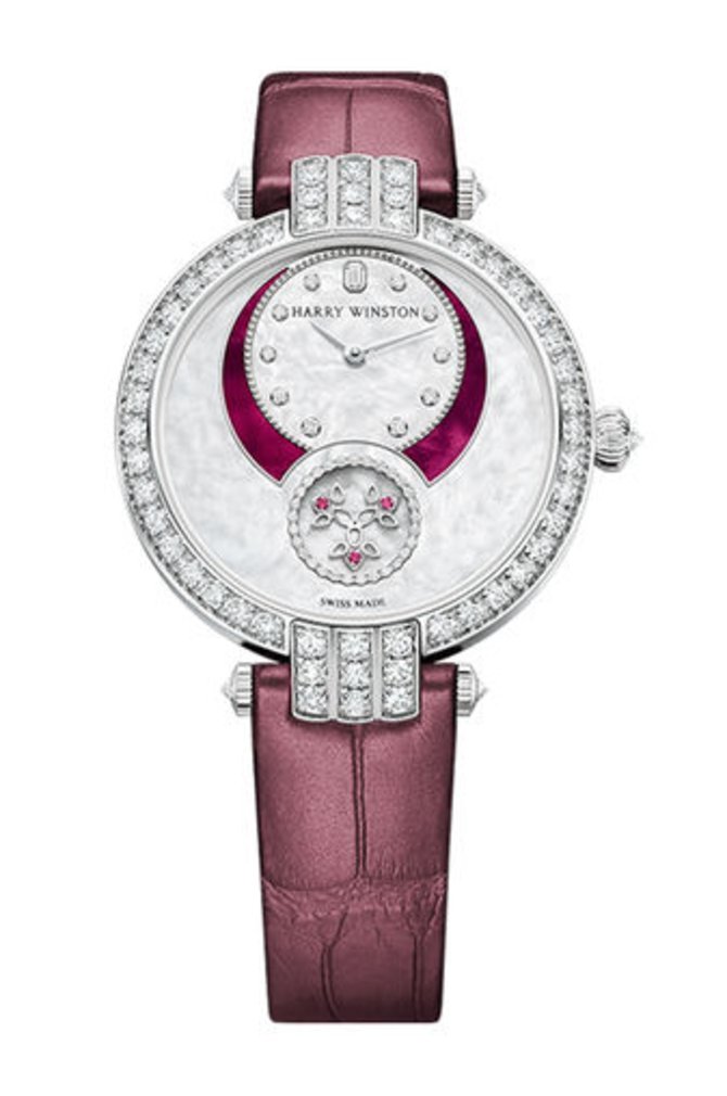 Часовой бренд HARRY WINSTON в 2019 году презентовал часы для женщин PRNASS36WW001 Premier Diamond Second Automatic 36mm, корпус которых выполнен из белого золота с инкрустацией бриллиантами классической огранки. Для фиксации часов на руке производитель укомплектовал часы ремешком из натуральной кожи аллигатора фиолетового цвета и застежкой из белого золота классического образца. Перламутровый часовой циферблат с бриллиантовой часовой разметкой защищен стеклом из сапфирового кристалла с противобликовым покрытием. Механический калибр HW2201 с автоматическим подзаводом выполнен специалистами компании HARRY WINSTON. Корпус обладает герметичностью до 30 метров.