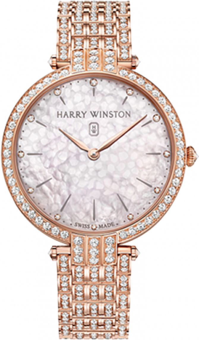 Бренд Harry Winston (по-русски звучит как Гарри Уинстон) специализируется на производстве ювелирных украшений и наручных часов высшего класса. Сам Гарри Уинстон прославился именно своим ювелирным мастерством, покорив всю Европу собственной ювелирной техникой. Добытый из морских раковин, искусно выделанный и вставленный в часы, перламутр придает им красоту, неподвластную времени. Продукт самой природы представляет собой твердый и радужный внутренний слой некоторых раковин, например, устриц и мидий. Перламутр состоит, в основном, из тонких, наложенных друг на друга, слоев карбоната кальция. Знаменитая радужная игра цветов перламутра создается за счет взаимного наложения отраженных световых волн. Как в восточной, так и в западной культуре, перламутр имеет долгую историю использования в декоративно-прикладном искусстве. Перламутр - для тех, кому нужны неповторимые часы. Ни одни часы не повторяют другие, так как циферблат каждых часов уникален, подобно отпечатку пальца. Благодаря новейшим технологиям создается перламутр различных цветов, от белоснежного до темно-синего. Огранка оказывает влияние на сверкание и искристость бриллианта. Когда огранка хорошая, свет отражается от одной грани к другой и затем рассеивается через верхнюю часть бриллианта. Если огранка слишком поверхностная или глубокая, свет уходит через нижнюю часть бриллианта или в противоположные стороны. Бриллианты компании-производителя гранятся в традиционном стиле.