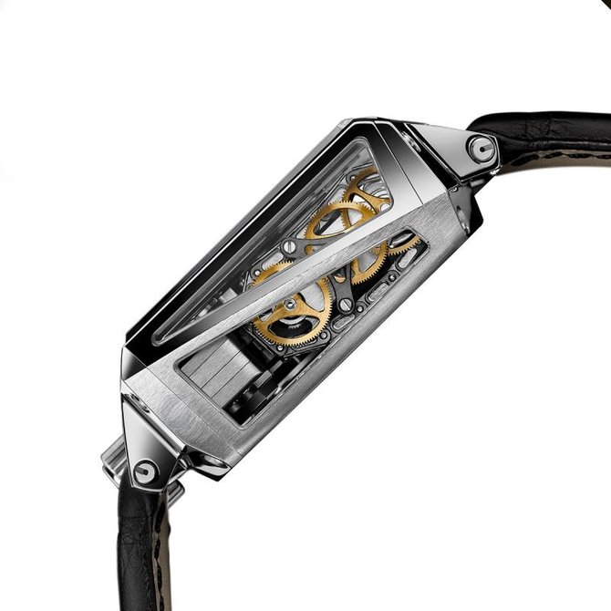 Швейцарская часовая фирма Hautlence дополнила часовую серию Concept d’Exception уникальной новинкой - механическими наручными часами Vortex. После выхода этого часового экземпляра Гийом Тету, президент бренда Hautlence, лично доставил часы в Москву, где сообщил о своих намерениях номинировать модель Vortex на почетную часовую премию Grand Prix d’Horlogerie de Genève. Стоит признаться, что шансы на победу у него высокие! Дизайнерская компания Berra Blanquer Design Consultants, принимавшая участие в разработке представляемых наручных часов, создала ультрасовременный образ часов. Корпус Vortex изготовлен в виде телевизора. Также он напоминает аквариум, через который со всех сторон корпуса можно увидеть часовой механизм. Корпус выполнен из высококачественного титана и защищен натуральным сапфировым стеклом. Минуты индицируются ретроградным индикатором, а часы - цепью со звеньями, выполненными как часовые метки. Цепь прокручивается на уровень одного звена каждые 60 минут, после чего меняются цифры в маленьком окне, служащим индикатором часов. Часовой механический механизм с автоподзаводом HLR2.0 и двумя заводными барабанами. Уровень запаса хода отображается на циферблате посредством специального индикатора, находящегося справа от минутной шкалы. Выпуск ограничен 88 экземплярами. Цена, рекомендованная производителем - 160 тысяч швейцарских франков.