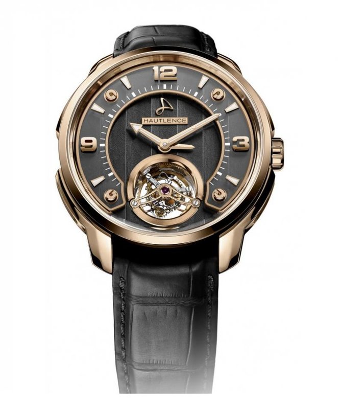 Бренд Hautlence выпустил наручные часы с функцией турбийона в корпусе круглой формы из комбинации розового золота и титана с PVD-покрытием, диаметром - 44 миллиметра, толщиной - 12.4 миллиметров и с герметичностью - 30 метров. Эмалевый двухуровневый циферблат черного цвета защищается сапфировым стеклом с антибликовым покрытием. Цифры, индексы и стрелки, размещенные на циферблате, покрыты люминесцентным составом SuperLumiNova. Механизм: швейцарский, мануфактурный, с автоматическим подзаводом, Калибр Hautlence HMC 802, балансовая частота - 21600 полуколебаний в час (3 гц), запас хода - 72 часа. Индикация: часы, минуты, время второго часового пояса (функция GMT). Укомплектованы часы черным ремешком из кожи луизианского крокодила.