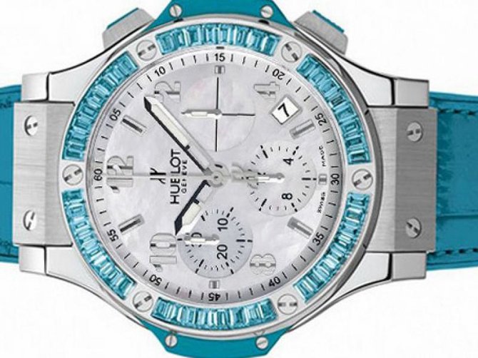 Великолепная модель женских наручных часов из серии Big Bang 41mm Ladies Tutti Frutti Big Bang Steel 341.SL.6010.LR.1907 от профессионалов своего дела, производителя Hublot, привлекает к себе внимание, и не оставит ни одну женщину равнодушной благодаря необычному дизайну и широкому функционалу модели. Наличие хронографа - подчеркивает функциональность Tutti Frutti Big Bang Steel 341.SL.6010.LR.1907. Круглый полированный корпус сделан из нержавеющей стали, имеет такие параметры: 41мм в диаметре. Автоматический механизм данной модели оснащен калибром HUB4300, и имеет запас хода на 42 часа. Прочные сапфировые стекла, устойчивые к царапинам и другим повреждениям закрывают корпус с обеих сторон. На белом циферблате, великолепно смотрятся отлитые вручную позолоченные стрелки. Апертура с датой находится на позиции между 4 и 5 часами. Ремешок выполнен из кожи аллигатора, оснащен вставкой из нержавеющей стали. Водонепроницаемость данной модели составляет 100 метров. Любители драгоценностей не оставят данную модель без внимания, так как безель украшен из 48-и голубых багетных топазов.