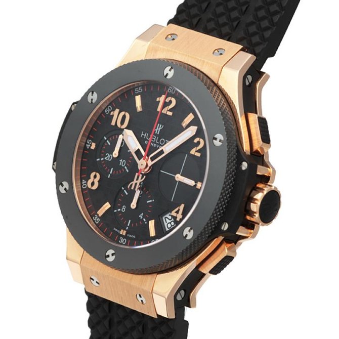 Очередная интересная модель мужских наручных часов Red Gold Big Bang 41mm Collection 341.PB.131.RX от производителя Hublot привлекает к себе великолепным дизайном и другими достоинствами. Одни из главных особенностей данной модели это хронограф и повышенная водонепроницаемость Круглый полированный корпус выполнен из розового 18-каратного золота , а диаметр корпуса равен 41 мм. На черном циферблате красиво смотрятся позолоченные отлитые вручную стрелки. Окошко с датой находится в положении между 4 и 5 часами. Стекла которые закрывают корпус выполнены из сапфира, который устойчив к царапинам и другим повреждениям. Благодаря задней прозрачной крышке сделанной из сапфира, можно наблюдать за работой механизма. Ультратонкий механизм оснащен автоматическим калибром HUB 41 и имеет запас хода на 42 часа. Одна из главных особенностей модели это водостойкость как говорилось ранее. Водонепроницаемость составляет 100 метров. Ремешок каучуковый, оснащен золотой 18-каратной застежкой.