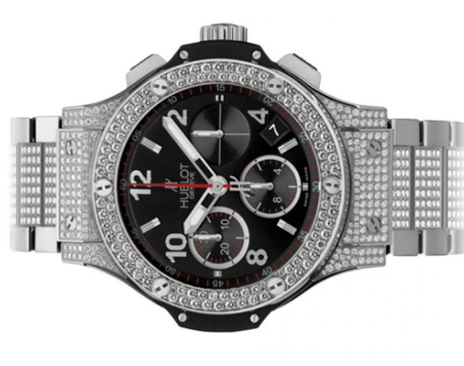 Очередная великолепная модель мужских наручных часов Steel Diamonds Big Bang 41mm Collection 342.SX.1223.SX.2704 от часовых мастеров Hublot привлекает к себе великолепным дизайном и другими достоинствами. Одна из главных особенностей данной модели это хронограф. Круглый комбинированный полированный корпус выполнен из нержавеющей стали, а диаметр корпуса равен 41 мм. На черно-сером циферблате красиво смотрятся белые отлитые вручную стрелки. Окошко с датой находится в положении между 4 и 5 часами. Стекла которые закрывают корпус выполнены из сапфира, который устойчив к царапинам и другим повреждениям. Благодаря задней прозрачной крышке сделанной из сапфира, можно наблюдать за работой механизма. Ультратонкий механизм оснащен автоматическим калибром HUB 4300 и имеет запас хода на 42 часа. Водонепроницаемость составляет 100 футов, что равняется 30 метрам. Браслет сделан из нержавеющей стали и украшен бриллиантами. Корпус инкрустирован белыми бриллиантами