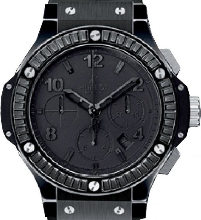 Довольно интересная модель мужских наручных часов Black Ceramic All Black Carat 44mm Collection 311.CI.1170.CI от часовых мастеров Hublot отличается уникальным дизайном и функциональностью. Круглый корпус выполнен из керамики, и имеет такие параметры: 44 мм в диаметре. Несомненно одна из главных достоинств этой модели это хронограф. На черном циферблате необычно и стильно смотрятся отлитые вручную черные стрелки. Окошко с датой находится на позиции между 4 и 5 часами. Прочные устойчивые к царапинам и прочим повреждениям стекла из сапфира, закрывают часы с двух сторон. Ультратонкий механизм оснащен калибром HUB 44, и имеет запас хода на 42 часа. Благодаря задней крышке выполненной из сапфира можно наблюдать за работой точного механизма. Водонепроницаемость модели составляет 100 футов, что равняется 30 метрам. Ремешок выполнен из каучука и оснащен керамической вставкой. Безель сделан из белого золота 18к с покрытием (PVD), инкрустированный 48-ю черными багетными бриллиантами 2.8 ct.
