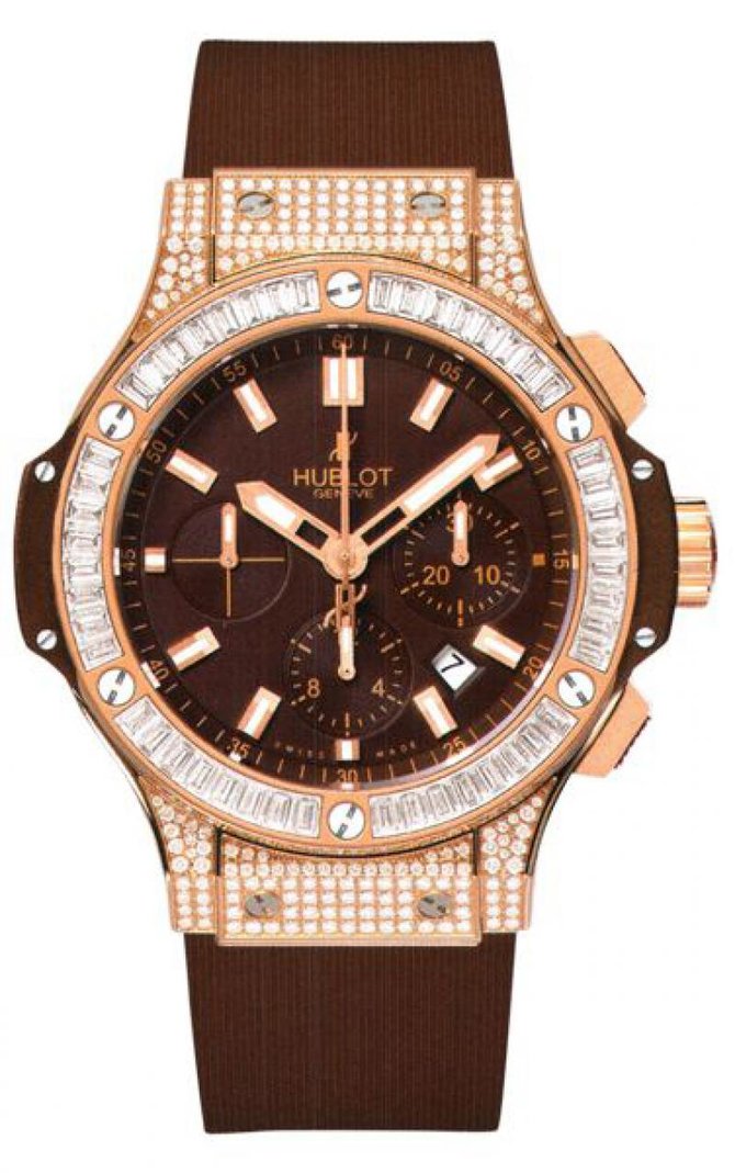 Приятная и интересная модель мужских наручных часов Cappuccino Gold 44mm Collection 301.PC.3180.RC.0904 от часовых мастеров Hublot отличается уникальным дизайном и функциональностью. Круглый корпус выполнен из 18-каратного розового золота, и имеет такие параметры: 44 мм в диаметре. Несомненно одни из главных достоинств этой модели это повышенная водостойкость и хронограф. На коричневом циферблате шикарно смотрятся отлитые вручную позолоченные стрелки. Окошко с датой находится на позиции между 4 и 5 часами. Прочные устойчивые к царапинам и прочим повреждениям стекла из сапфира, закрывают часы с двух сторон. Ультратонкий механизм оснащен калибром HUB 4100, и имеет запас хода на 42 часа. Благодаря задней крышке выполненной из сапфира можно наблюдать за работой точного механизма. Водонепроницаемость модели составляет 100 метров. Ремешок сделан из каучука, оснащен золотой 18-каратной вставкой. Безель сделан из 48-и белых багетных бриллиантов 2.8 ct., корпус инкрустирован 212-ю белыми бриллиантами 1.08ct.