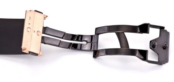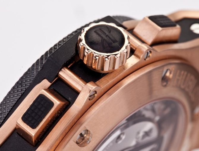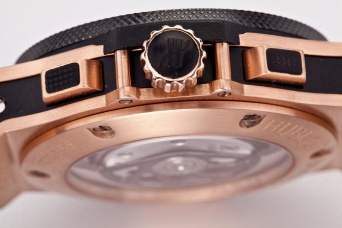 Модель мужских наручных часов Evolution Gold 44mm Collection 301.PM.1780.RX от часовых мастеров Hublot отличается уникальным дизайном и функциональностью. Круглый корпус выполнен из 18-каратного розового золота, и имеет 44 мм в диаметре. На черном, карбоновом циферблате шикарно смотрятся отлитые вручную золотые стрелки. Окошко с датой находится на позиции между 4 и 5 часами. Прочные устойчивые к царапинам и прочим повреждениям стекла из сапфира, закрывают часы с двух сторон. Механизм калибра HUB 4100 имеет запас хода 42 часа. Благодаря задней крышке выполненной из сапфира можно наблюдать за работой прекрасного механизма. Водонепроницаемость модели составляет 100 метров. Ремешок каучуковый с застежкой 18-каратного розового золота.
