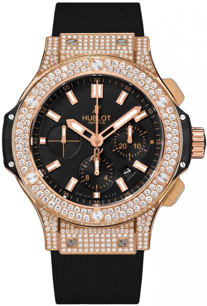 Очередная потрясающая модель мужских наручных часов Evolution Gold 44mm Collection 301.PX.1180.RX.1704 от часовых мастеров Hublot отличается уникальным дизайном и функциональностью. Круглый корпус выполнен из 18-каратного золота, инкрустирован 212 белыми бриллиантами 1.08ct и имеет 44 мм в диаметре. Безель инкрустирован 114 белыми бриллиантами 1.78ct. Несомненно одни из главных достоинств этой модели это повышенная водостойкость и хронограф. На черном циферблате шикарно смотрятся отлитые вручную позолоченные стрелки. Апертура с датой находится на позиции между 4 и 5 часами. Прочные устойчивые к царапинам и прочим повреждениям стекла из сапфира, закрывают часы с двух сторон. Ультратонкий механизм оснащен калибром HUB 4100, и имеет запас хода на 42 часа. Благодаря задней крышке выполненной из сапфира можно наблюдать за работой точного механизма. Водонепроницаемость модели составляет 100 метров. Ремешок черный, каучуковый, оснащен золтой 18-каратной застежкой.
