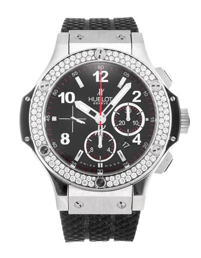 Очередная интересная модель мужских наручных часов Steel Diamonds из серии 44mm Collection 301.SX.130.RX.114 от часовых мастеров Hublot отличается великолепным дизайном и функциональностью. Круглый корпус выполнен из нержавеющей стали, и имеет такие параметры: 44 мм в диаметре. Несомненно одна из главных достоинств этой модели это хронограф. На черном циферблате шикарно смотрятся отлитые вручную стальные стрелки. Секундная стрелка - красного цвета. Апертура с датой находится на позиции между 4 и 5 часами. Прочные устойчивые к царапинам и прочим повреждениям стекла из сапфира, закрывают часы с двух сторон. Ультратонкий механизм оснащен калибром HUB 44, и имеет запас хода на 42 часа. Благодаря задней крышке выполненной из сапфира можно наблюдать за работой точного механизма. Водонепроницаемость модели составляет 100 футов, что равняется 30 метрам. Ремешок черный, каучуковый, оснащен раскладывающейся застежкой. Безель украшают 114 белых бриллиантов 1.78ct.