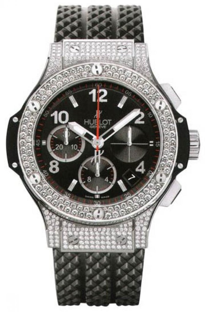 Очередная привлекательная модель мужских наручных часов Steel Diamonds из серии 44mm Collection 301.SX.130.RX.174 от производителя Hublot отличается великолепным дизайном и функциональностью. Круглый корпус выполнен из нержавеющей стали, и имеет такие параметры: 44 мм в диаметре. Несомненно одна из главных достоинств этой модели это хронограф. На черном циферблате шикарно смотрятся отлитые вручную стальные стрелки. Окошко с датой находится на позиции между 4 и 5 часами. Прочные устойчивые к царапинам и прочим повреждениям стекла из сапфира, закрывают часы с двух сторон. Ультратонкий механизм оснащен калибром HUB 44, и имеет запас хода на 42 часа. Благодаря задней крышке выполненной из сапфира можно наблюдать за работой точного механизма. Водонепроницаемость модели составляет 100 футов, что равняется 30 метрам. Браслет черный, каучуковый, оснащен вставкой из нержавеющей стали. Безель украшают 114 белых багетных бриллиантов 1.78ct. Корпус инкрустирован 212-ю белыми бриллиантами 1.08 ct.
