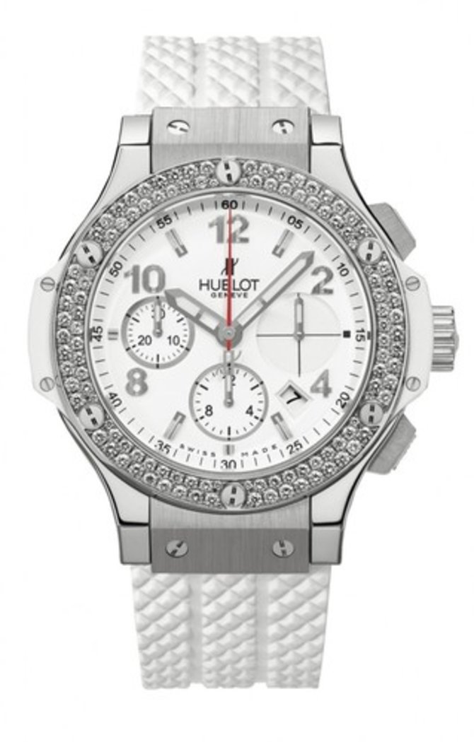 Часы унисекс HUBLOT 301.SE.230.RW.114 Big Bang 44 mm Big Bang выпущены в круглом 44-миллиметровом корпусе из нержавеющей стали с безелем, инкрустированном бриллиантами. На белом циферблате, который накрыт стеклом из прочного сапфирового кристалла с антибликовыми свойствами, показываются часы, минуты, секунды, хронограф, дата. Функциональность модели обеспечивается механическим мануфактурным калибром с автоподзаводом производства инженеров HUBLOT. Белый ремень из каучука со стальной застежкой - в комплекте. На стрелки нанесен люминесцентный состав для обеспечения читаемости данных в темноте. Уровень водонепроницаемости корпуса рассчитан на погружение под воду до 30 метров глубины.