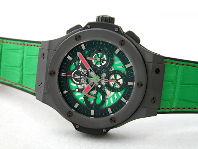Очередная интересная модель мужских наручных часов, которая точно порадует футбольных фанатов Mexican Football Federation 44mm limited Collection 310.CI.1190.GR.FMF10 от часовых мастеров Hublot отличается великолепным дизайном и функциональностью. Круглый комбинированный корпус выполнен из керамики и каучука, и имеет такие параметры: 44.5 мм в диаметре. Несомненно одни из главных достоинств этой модели это повышенная водостойкость и хронограф. На черно - зеленом циферблате шикарно смотрятся отлитые вручную стальные стрелки. Прочные устойчивые к царапинам и прочим повреждениям стекла из сапфира, закрывают часы с двух сторон. Ультратонкий механизм оснащен калибром HUB 4200, и имеет запас хода на 42 часа. Водонепроницаемость модели составляет 100 метров. Ремешок зеленый, сделан из кожи аллигатора, оснащен вставками из нержавеющей стали и раскладной застежкой. Серия данной модели ограничена в 250 штук экземпляров.