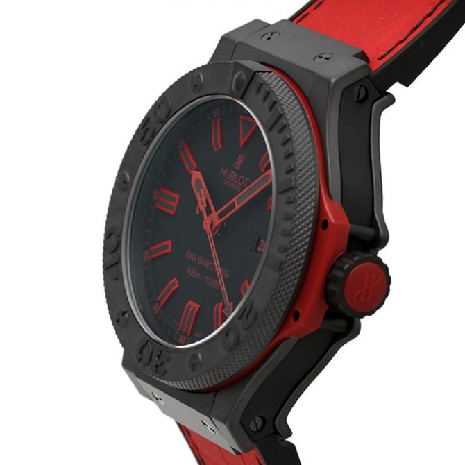 Мастера своего часового дела, производитель Hublot представляют очередную модель мужских наручных часов из серии Big Bang King collection 322.CI.1130.GR.ABR10 Black Ceramic All Black Red. Корпус данной модели часов круглый, выполнен из керамики, и имеет параметры: 48 мм в диаметре. Одно из главных достоинств данной модели конечно же водостойкость. И действительно, часы впечатляют водонепроницаемостью в 300 метров. На черно-красном циферблате великолепно смотрятся отлитые вручную красные стрелки. Автоматический механизм оснащен калибром HUB 1400 и имеет запас хода на 42 часа. Прочные сапфировые стекла, устойчивые к царапинам и другим повреждениям закрывают корпус с обеих сторон. Апертура с датой находится на позиции 3 часа. Стрелки покрыты люминесцентной краской, что придает им свечение в темноте. Ремешок сделан из кожи аллигатора и каучука, и оснащен керамическими вставками, а также раскладывающейся застежкой. Серия данной модели ограничена в 500 экземпляров.