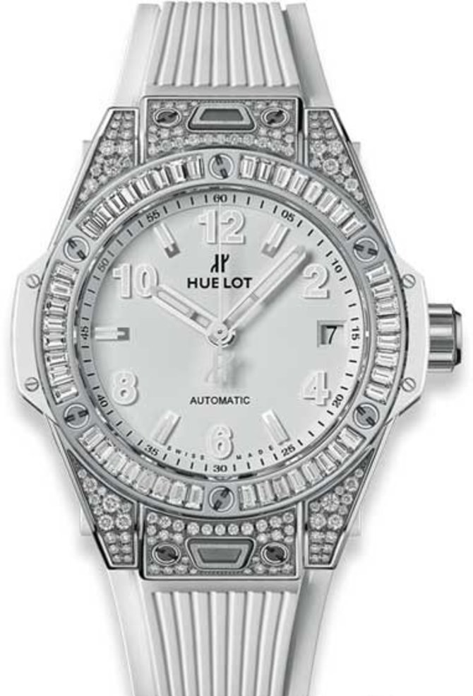 Марка по производству часов из Швейцарии Hublot специализируется на производстве наручных часов класса люкс. Эти часы Big Bang One Click 39mm 465.SE.2010.RW.0904 представлены в корпусе, выполненном из нержавеющей стали, диаметром 39 мм и с водонепроницеамостью до 100 метров. Установленный в часах автоматический механизм, калибр HUB 1710, обладает запасом хода на 50 часов. Белый циферблат индицирует часы, минуты, секунды и дату. Часы комплектуются каучуковым ремешком белого цвета с застежкой из нержавеющей стали. Обратите внимание, что корпус по периметру был инкрустирован белыми бриллиантами классической и багетной огранок.
