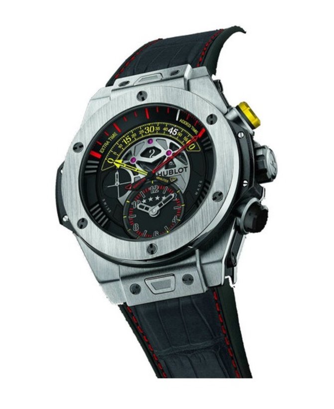 Швейцарский часовой бренд Hublot недавно представил свое новое творение - наручные механические часы с функцией хронографа "Bi-Retrograde Chronograph" в корпусе из титана, которые пополнили коллекцию часов "Big Bang". Данная модель - это официальные часы футбольного клуба Guangzhou Evergrande Taobao из Китая. Внутри корпуса установлен би-ретроградный механизм с хронографом, автоподзаводом и 72-часовым запасом хода (Калибр HUB1261). Размеры корпуса: 45.5 х 16.95 мм. Функции циферблата: часы, минуты, секунды. Часы выпущены лимитированной серией из 50 экземпляров. Водостойкость корпуса - 100 метров. Ремешок изготовлен из каучука и кожи аллигатора с классической пряжкой.