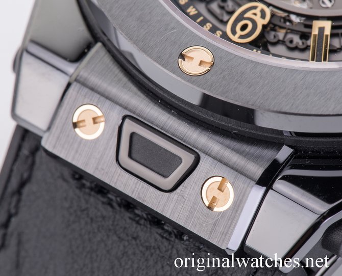 Популярная швейцарская мануфактура Hublot разработала новую модель швейцарских часов с хронографом в честь спортсмена Усейна Болта, а также в честь основания нового бутика бренда Hublot на Манхеттене, в Нью-Йорке. Шикарная модель наручных спортивных часов выпущена ограниченной серией в 250 экземпляров. Данная версия "Usain Bolt Limited Edition" имеет корпус из керамики, диаметром 45.5 миллиметров, внутри которого установлен мануфактурный калибр HUB1242 с автоподзаводом, хронографом с горизонтальной двойной муфтой и колонным колесом. Водонепроницаемость корпуса - 100 метров. Безель корпуса зафиксирован шестью золотыми винтами. Пушеры хронографа оснащены специальным защитным устройством. Стрелки и другие элементы циферблата покрыты люминесцентным веществом SuperLuminova. Также стоит отметить, что хронограф в этой модели с функцией "flyback". Запас хода механизма - 72 часа. Балансовая частота - 28 800 полуколебаний в час. Ремешок к часам изготовлен из натуральной телячьей кожи и каучука.