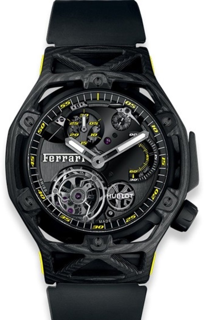 #Hublot408.JW.0123.RXClassic FusionTechframe Ferrari Tourbillon Chronograph Carbon Yellow 45 mm. Цена на наручные#часыHublot.