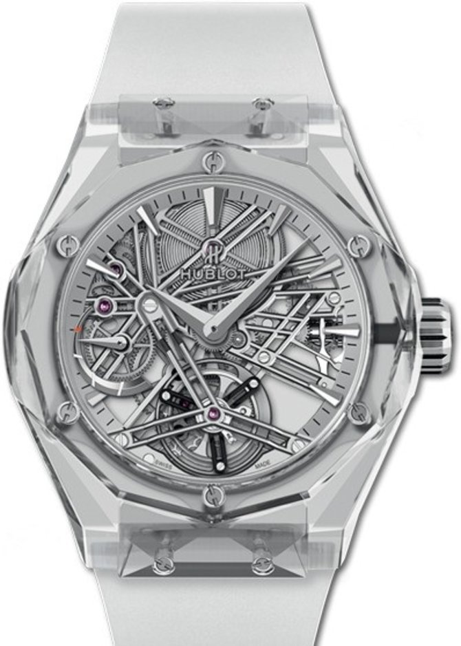 В 2019 году на международной выставке высокого часового искусства SIHH 2019 компания Hublot представила модель Classic Fusion Tourbillon Power Reserve 5 Days Orlinski 45 mm 505.JX.6910.RT.ORL19 в корпусе из прозрачного сапфирового стекла. Внутри швейцарских часов установлен часовой механизм с ручным подзаводом HUB6021 мануфактурного производства марки Hublot с функцией турбийона. Циферблат-скелетон защищен сапфировым кристаллом. Модель поставляется с каучуковым ремнем белого цвета и классической застежкой из титана. Лимитированный тираж этой модели составляет 30 экземпляров на весь мир. Корпус отличается 30-метровой водостойкостью.