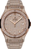 Модель мужских наручных часов Classic Fusion King Gold Diamonds REF : 511.OX.1180.LR.1104 от производителя Hublot не оставит к себе никого равнодушным, потому как завораживает своим внешним классическим видом и функциональностью. Круглый корпус выполнен из золота собственного производства King Gold, и имеет 45 мм в диаметре.
